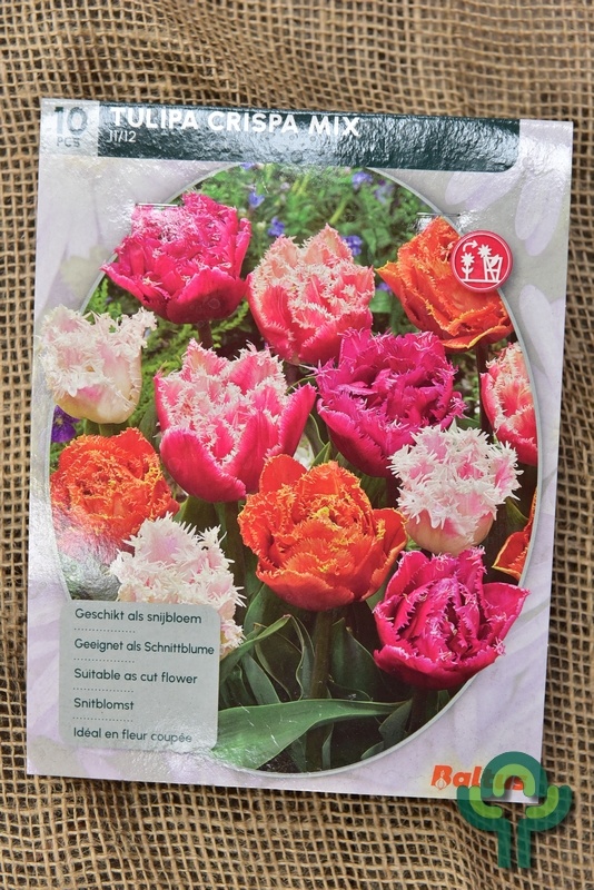 Tulp - Tulipa Dubbel Crispa per 10 biedt een betoverende verzameling van tulpen met diverse kleuren en dubbele bloemen die tuinen en landschappen verfraaien met hun gevarieerde bloei en levendige tinten. Deze bloemen voegen een speelse en kleurrijke charme toe aan buitenruimtes.